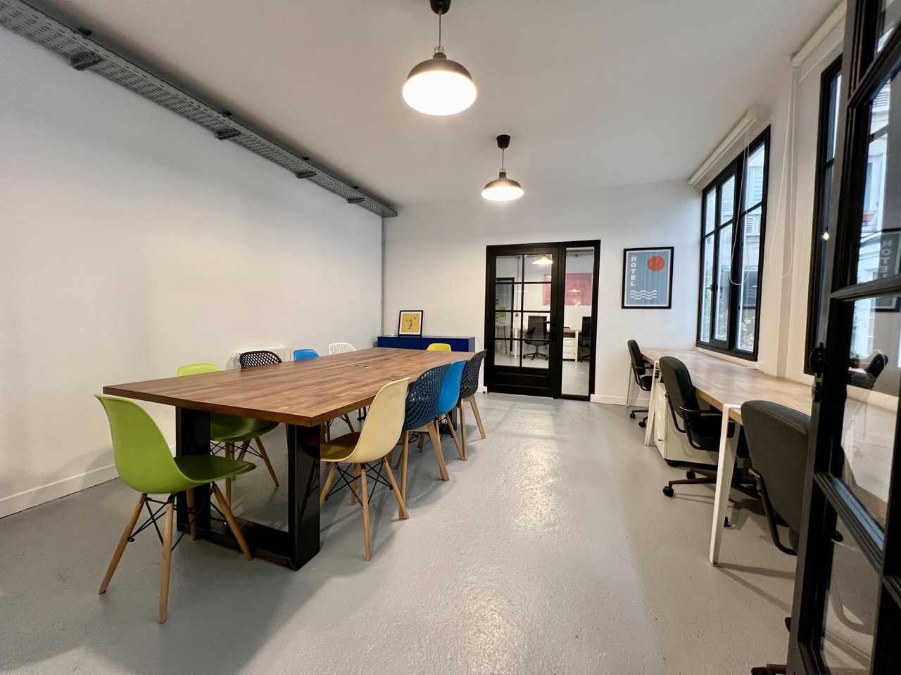 Le client a à disposition 2 open spaces, 1 salle de réunion de 10 places ainsi que 2 phoneboxes. Il y a un accès privatif par la cour, ce qui permet de rentrer directement dans les bureaux sans passer par les espaces communs.