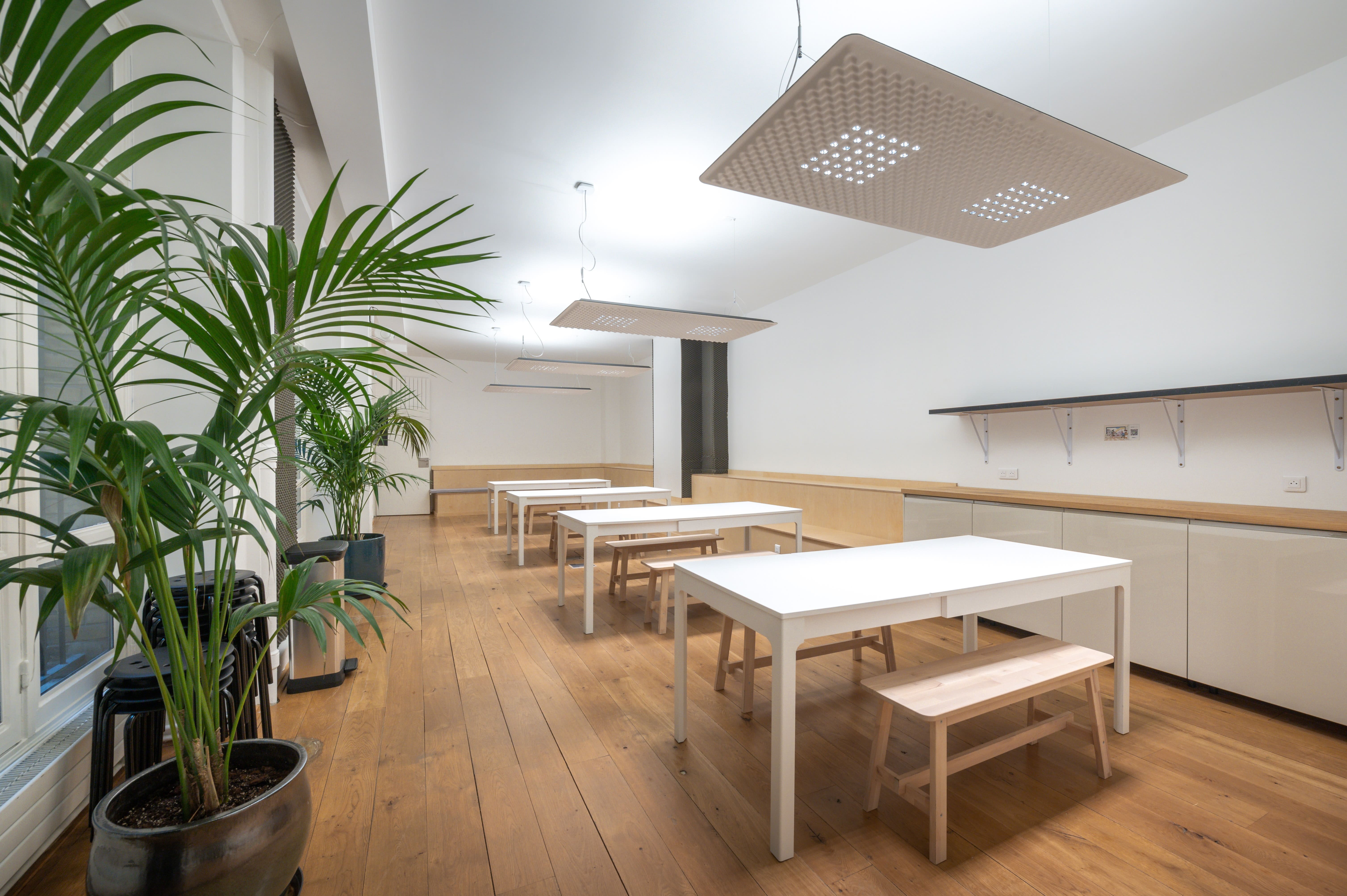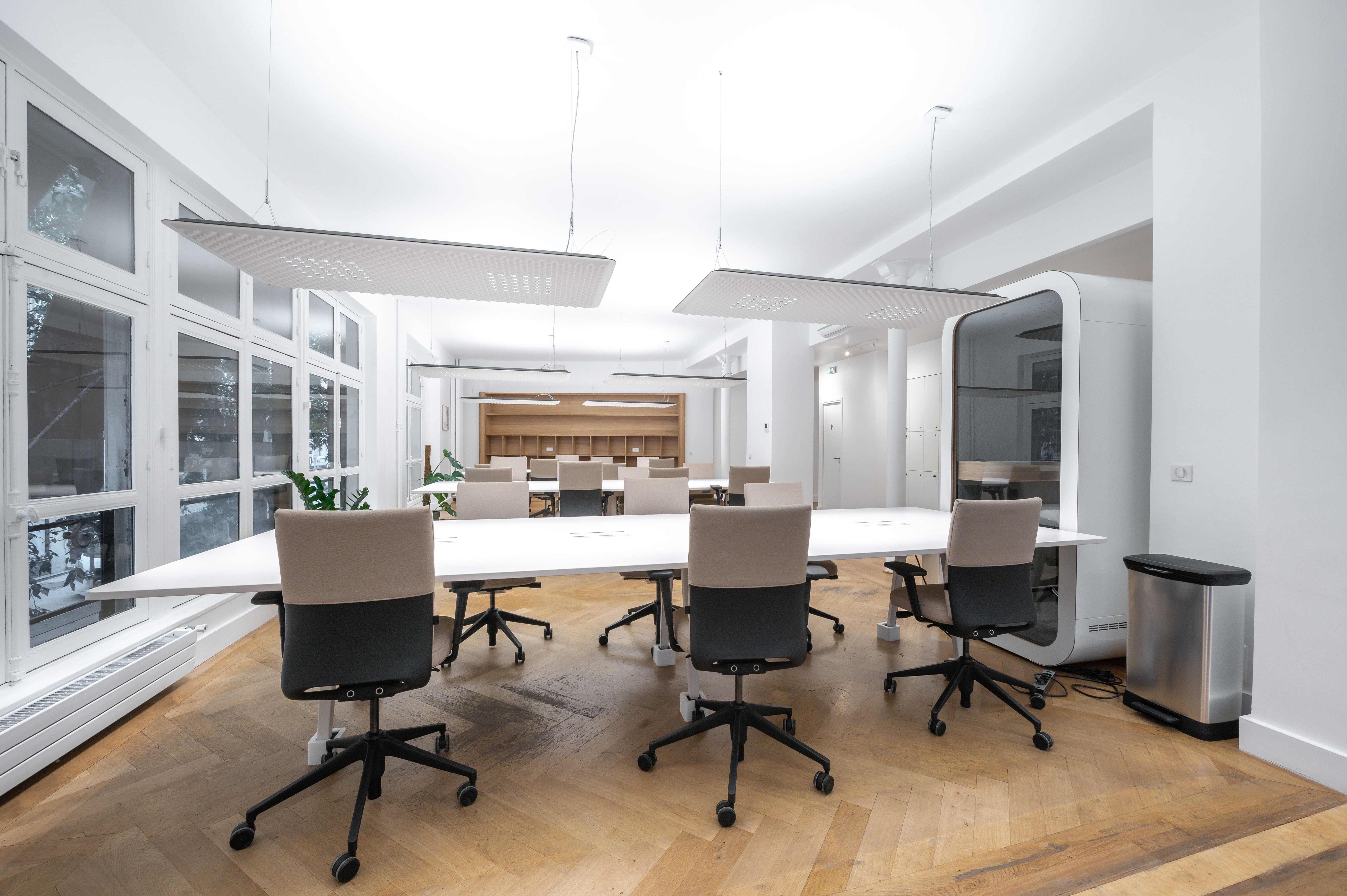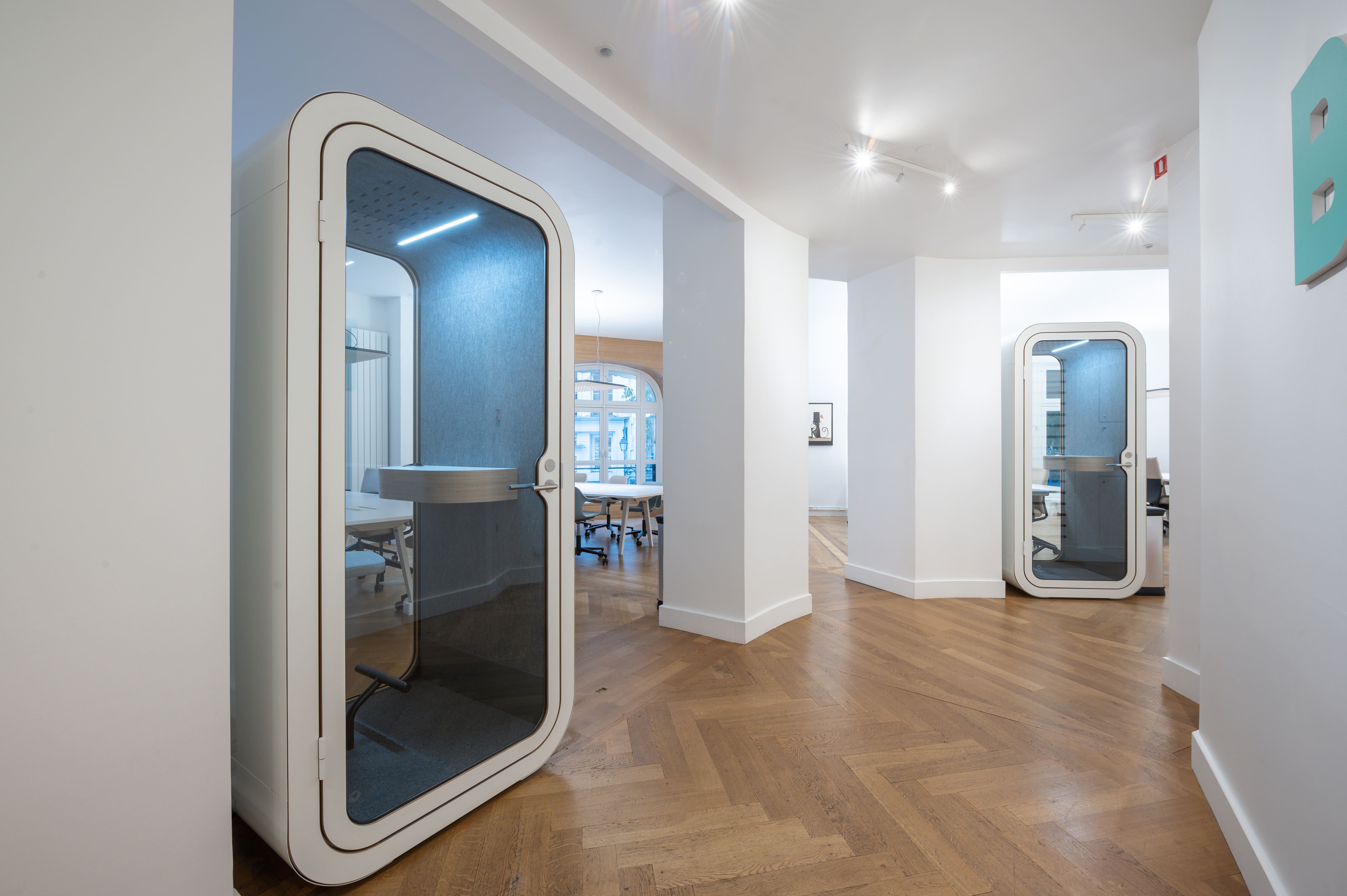 Conçu pour accueillir 66 postes de travail, il dispose également de 4 salles de réunion, 4 phoneboxes, ainsi qu’un système hi-fi Devialet pour une ambiance sonore optimale.