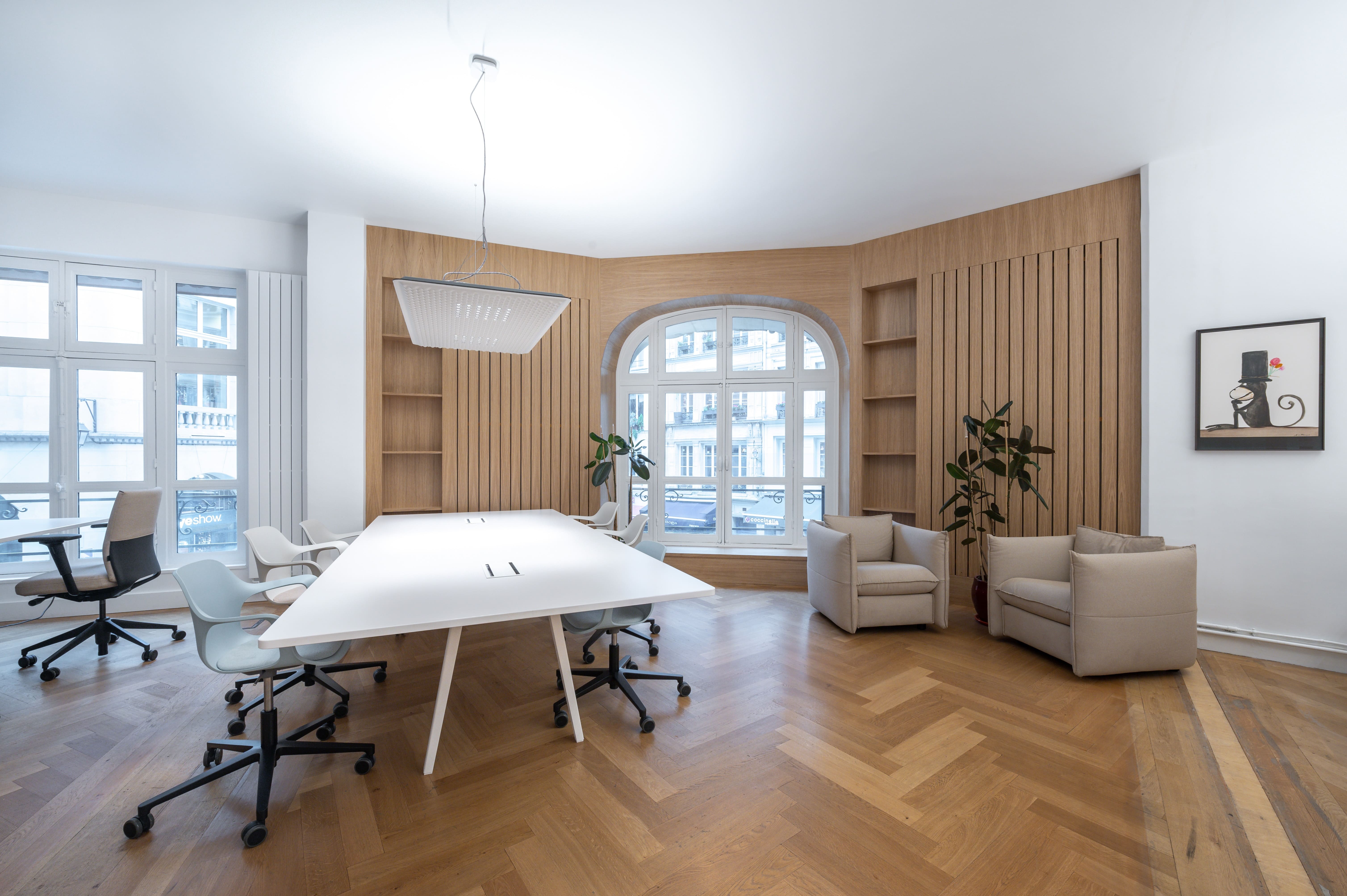 Au cœur du dynamique quartier du Sentier, cet espace de 460 m² offre un environnement de travail spacieux et élégant avec son parquet d'époque.
