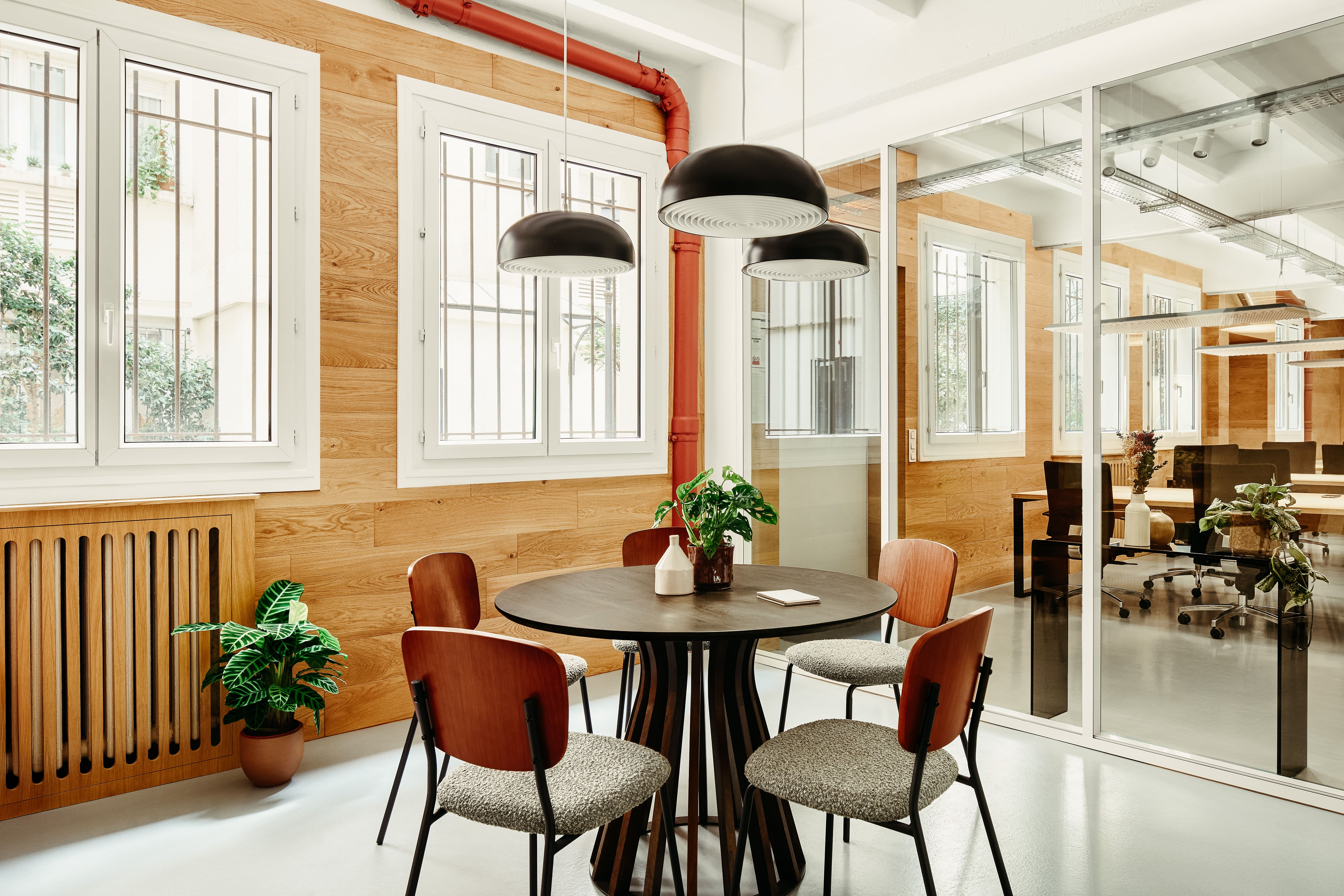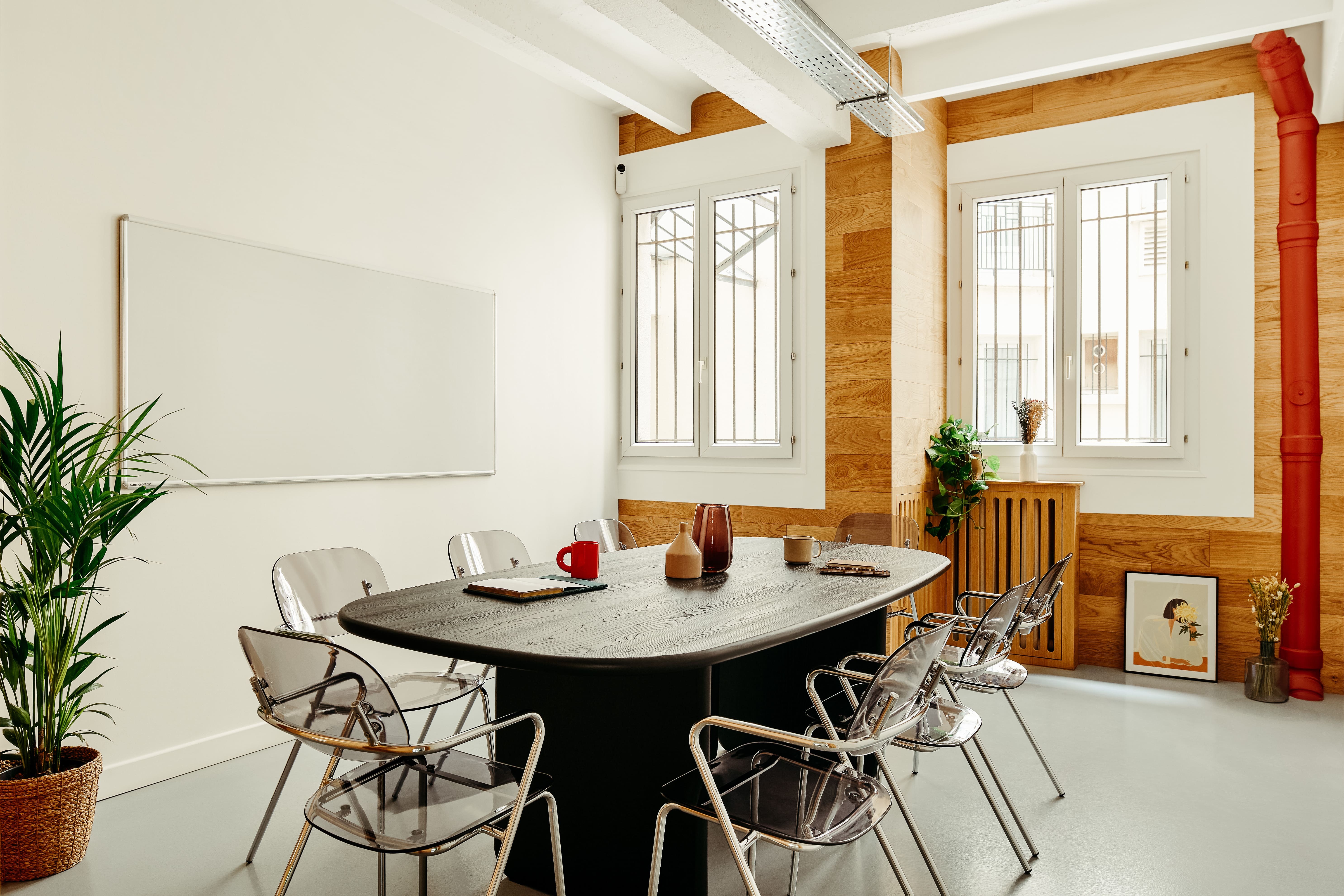 Ce bureau de 30 postes de travail situé au RDC donnant sur cour vous propose un espace de travail spacieux et agréable équipé d'un système son Devialet.